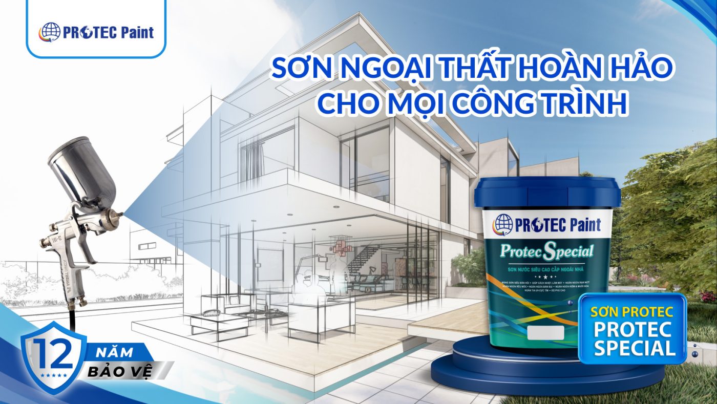 Điểm tô không gian bằng các sản phẩm sơn không chỉ là việc giúp thể hiện được gu thẩm mỹ, phong cách sống của gia chủ mà còn là bước quan trọng giúp bảo vệ và kéo dài tuổi thọ công trình. Đặc biệt không nên bỏ qua các dòng sản phẩm sơn ngoại thất với các đặc tính chuyên biệt, sản phẩm sẽ giúp cho công trình giữ được độ bền đẹp và mang đến hiệu quả bảo vệ vượt trội. Và sơn Protec Special của Protec Paint chính là sản phẩm sơn ngoại thất ưu việt với tính năng chống thẩm và khả năng bảo vệ vượt trội giúp duy trì sắc màu, kết cấu, diện mạo công trình luôn như mới.