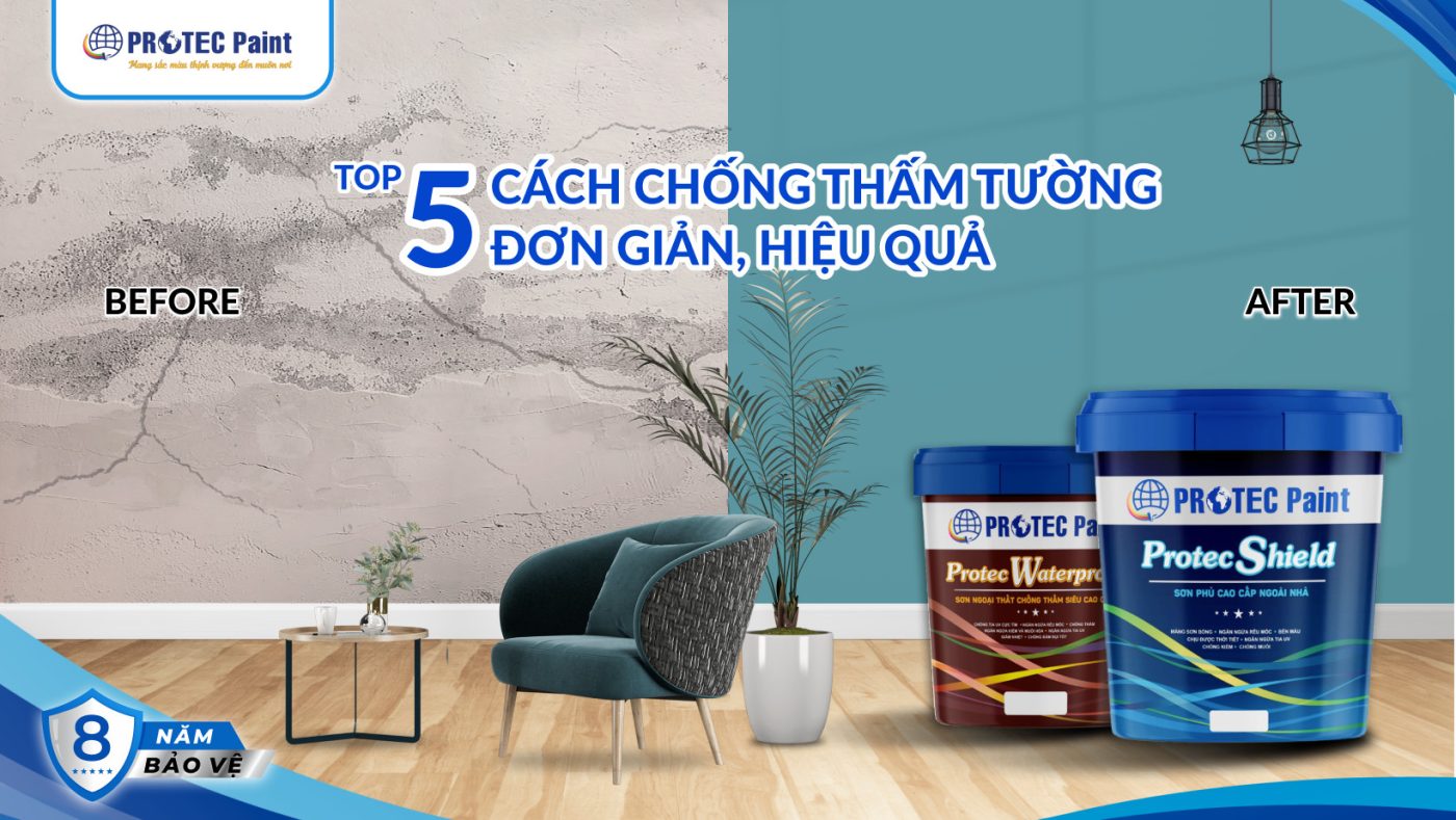 Thấm tường là một vấn đề mà nhiều công trình gặp phải và gây ra những hậu quả nghiêm trọng như làm hỏng cấu trúc nhà cửa, mốc nấm và làm giảm giá trị của ngôi nhà. Hiểu rõ nguyên gây thấm tường và cách giảm chống thấm phù hợp chính là yếu tố quan trọng giúp ngăn chặn các hậu quả nguy hại cho kết cấu công trình. Trong bài viết dưới đây, Protec Paint sẽ mang đến cho bạn top 5 biện pháp chống thấm tường đơn giản, hiệu quả được rút ra từ kinh nghiệm trên hàng trăm dự án lớn nhỏ của chúng tôi.